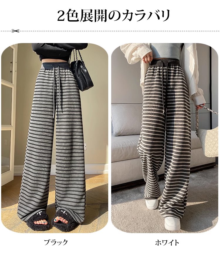 美脚効果のあるボーダー柄ワイドパンツサイド画像