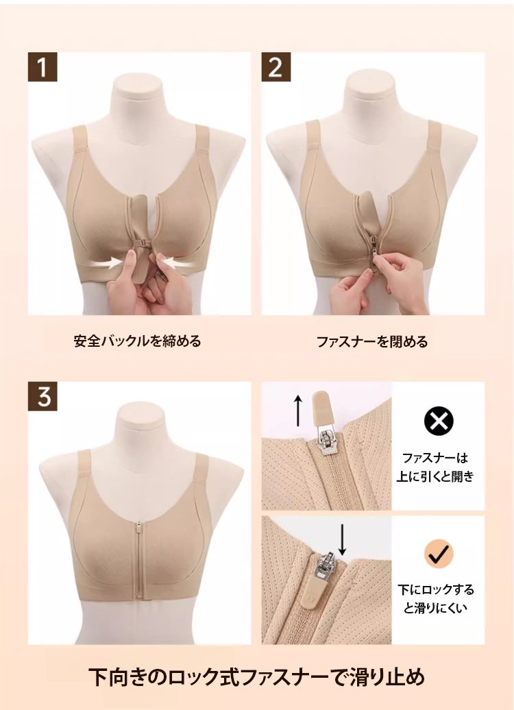 フロントファスナーで簡単に着脱できるブラジャー