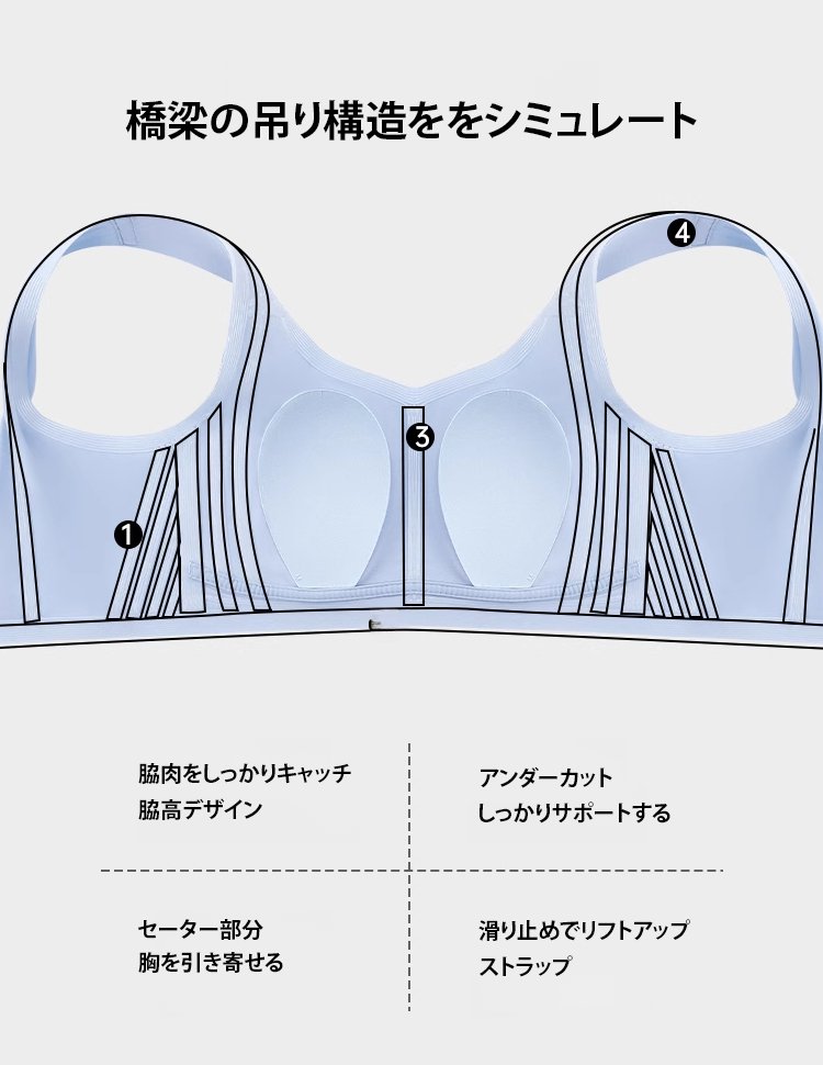 【リフトアップ】胸を小さく見せるフロントファスナ付きーブラ