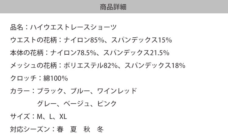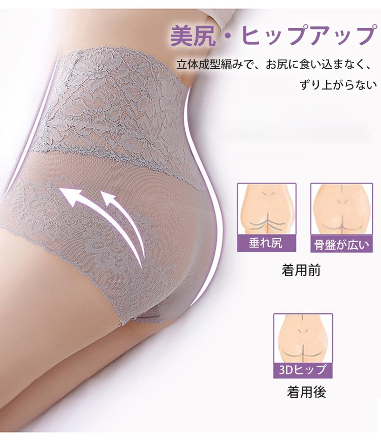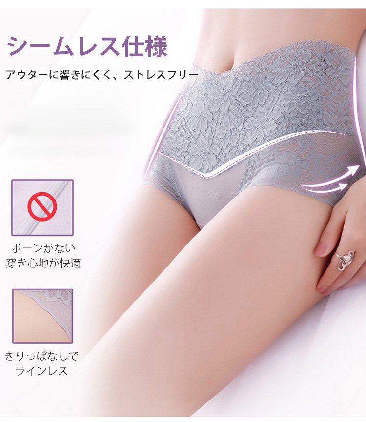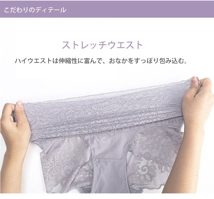 【ハイウエストレースショーツ】制菌・通気・快適 軽く薄いシームレス仕様 穿き心地良くストレスフリー!